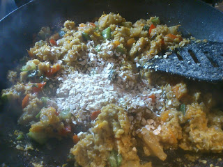 En una cazuela de barro o bandeja de horno poner tada la verdura,salpimentarla